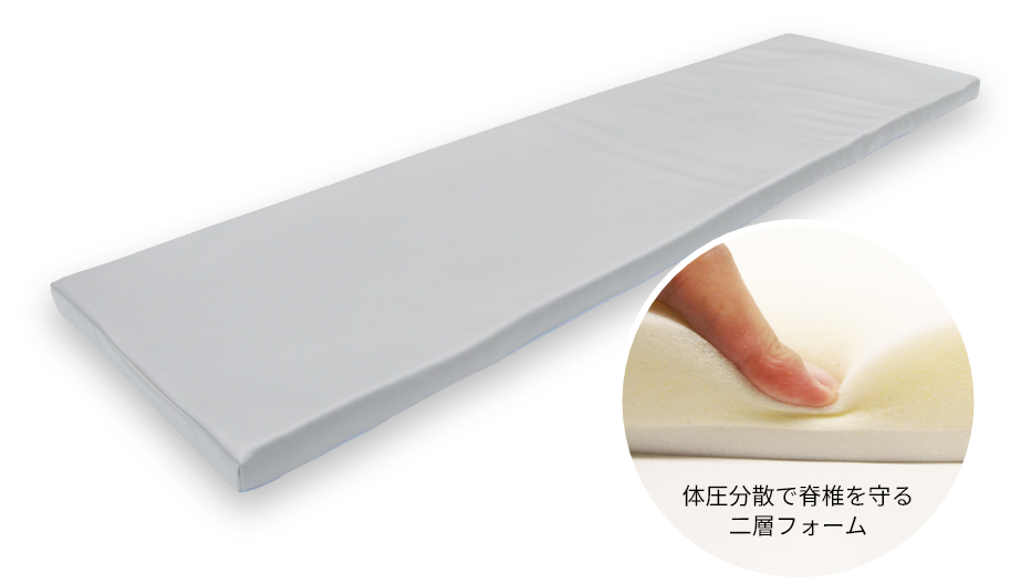 二層のフォームで体圧を分散しつつ、 体の底つきを抑えます。 痛みの少ない安定した治療姿勢を維持できます。